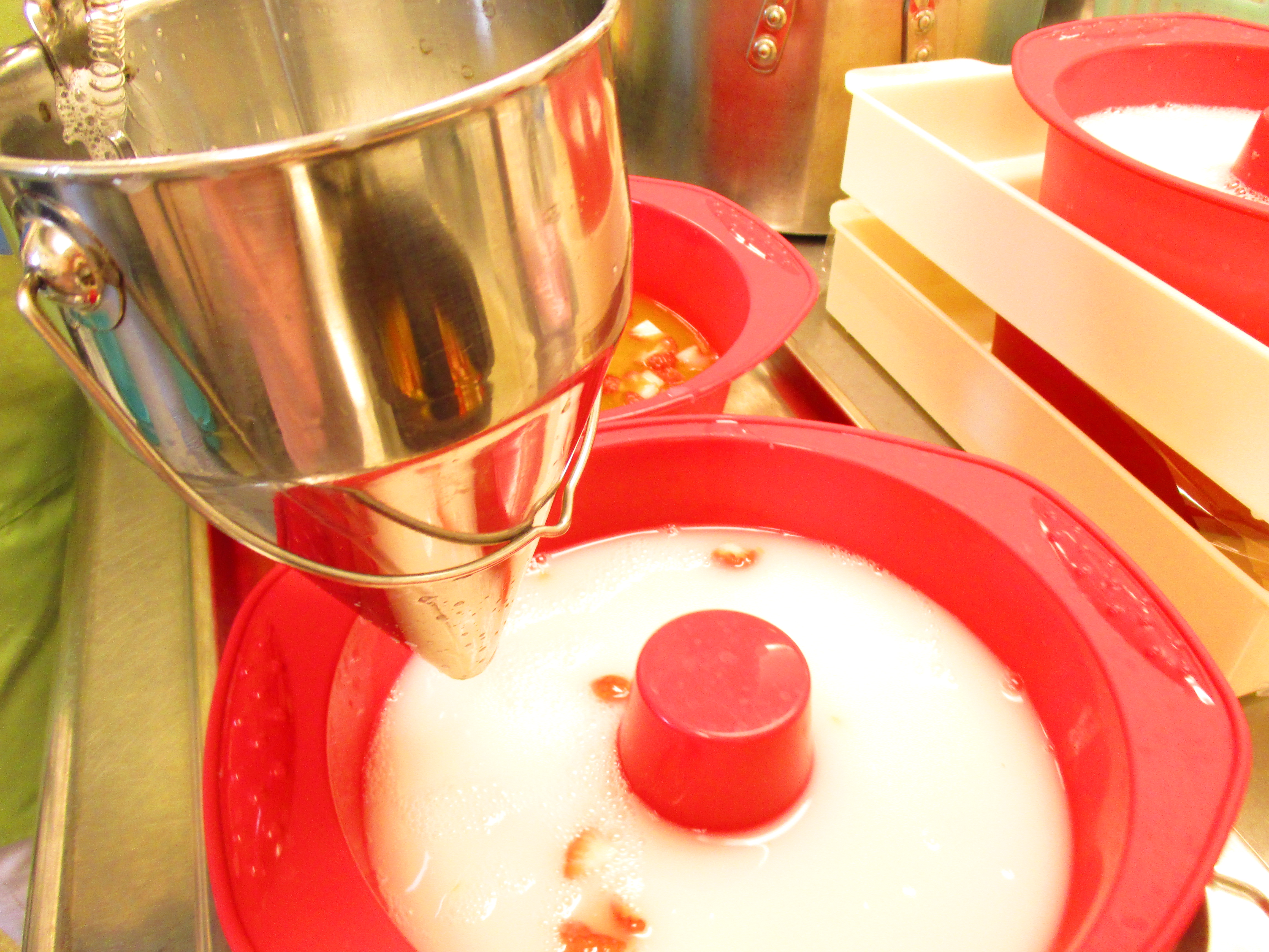 ①型にみかんジュース+三温糖+ゼラチン液を注ぎます。