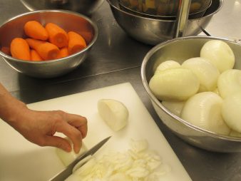 ↑野菜を煮込んでいます。汁物は毎日約20L作っていますよ!