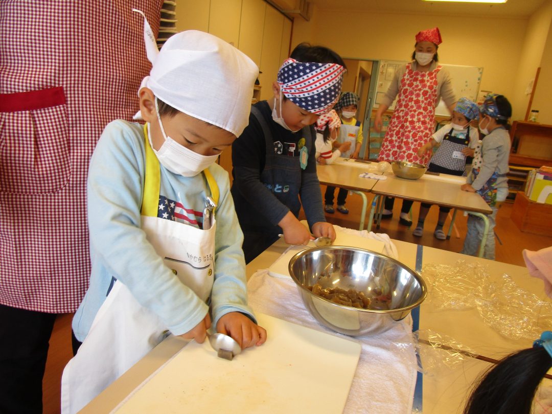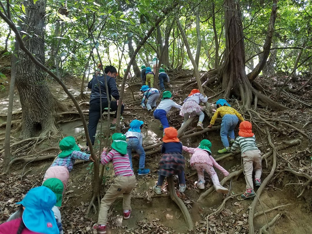 子どもだから危ないことをさせないのではなく、どうしたら危険を回避できるのか、を教えてあげること。年長組だけが出来る活動を大切にしています。 |