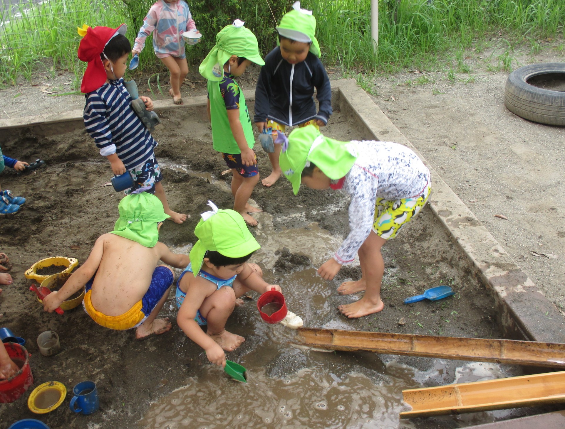 解放的でダイナミックな遊びは乳幼児期ならではのもの。砂泥の感触を肌で感じ、五感をフル回転させて遊ぶとき、集中力が高まり、感性が冴えわたります。 |