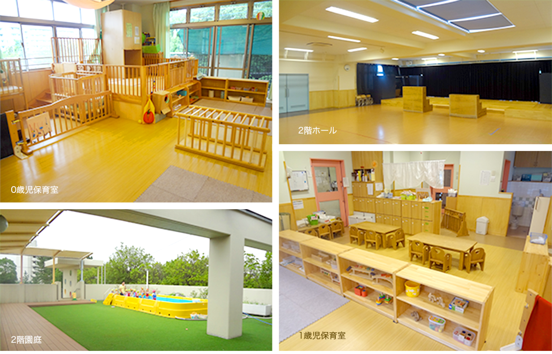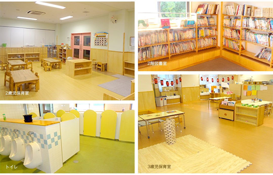平成22年4月1日に開園した園舎は、子どもたちの健康に配慮し、建築資材においてもシックハウスアレルギーを引き起こす資材を一切使用せず、床材は病院などで使用されているリノリウムを使用しています。また、園内はエントランスを始め図書コーナーなどゆったりとしたスペースがあり、子どもたちが好きな遊びをじっくり取り組めるように、考えて作られています。
